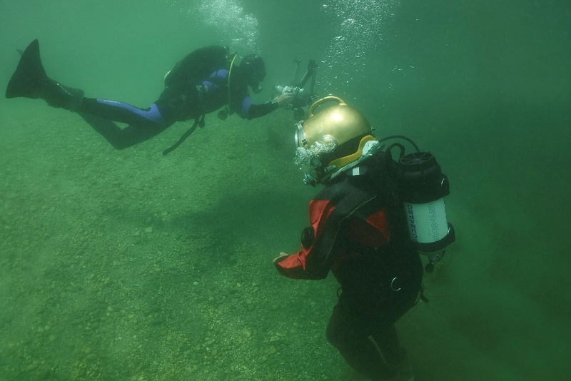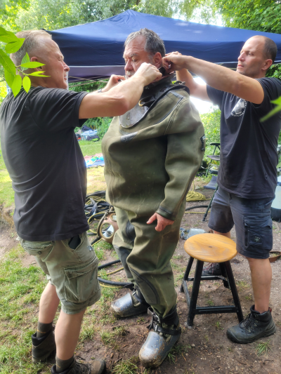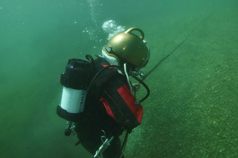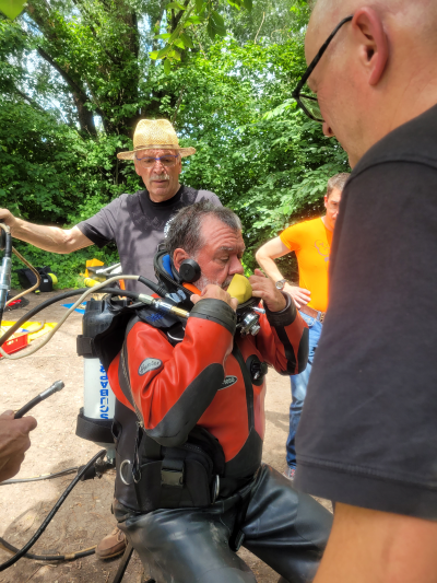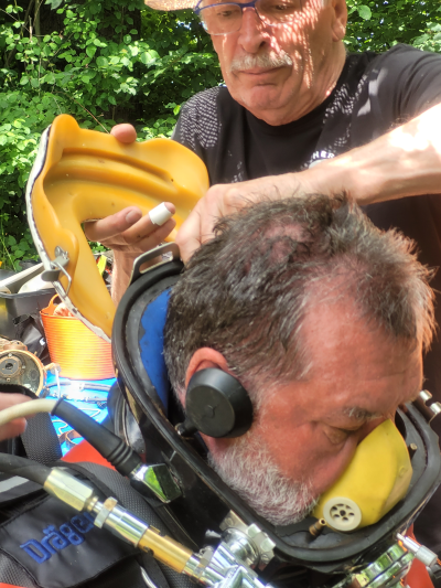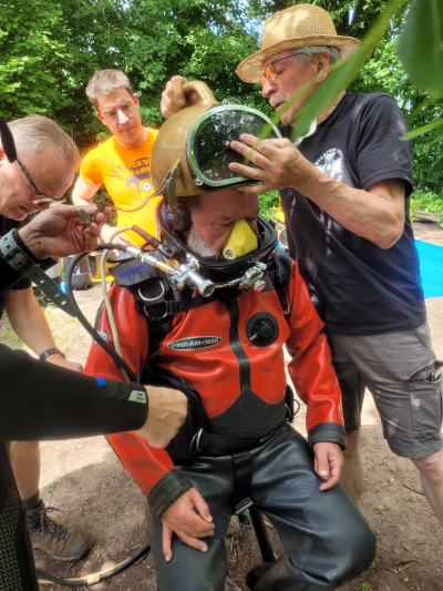 Tauchgängen mit den zwei Helmen. Anfangen tut's mit dem Helm