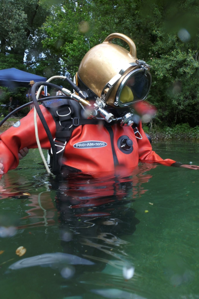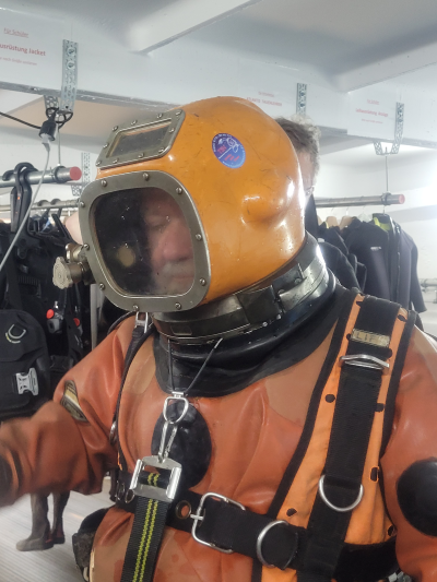 | Tauchen mit dem Aquadyne AH2 und DIVEX AH5 im Atlantis Berlin im März 2026 | Tauchen mit dem COMEX-Helm aus Frankreich und dem MEDI Kupferhelm im Echinger Weiher bei München im Juni 2025 | Tauchen mit dem SP 20-D und den SPP 50 im September 2023 | |