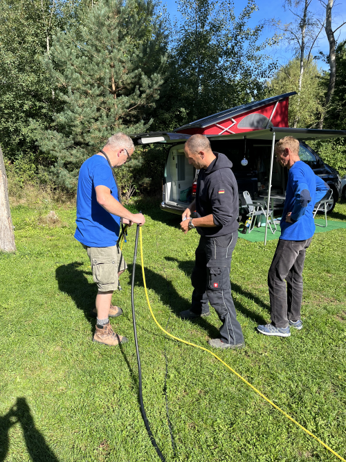 Letzte Vorbereitungen. Die Schläuche werden präpariert.